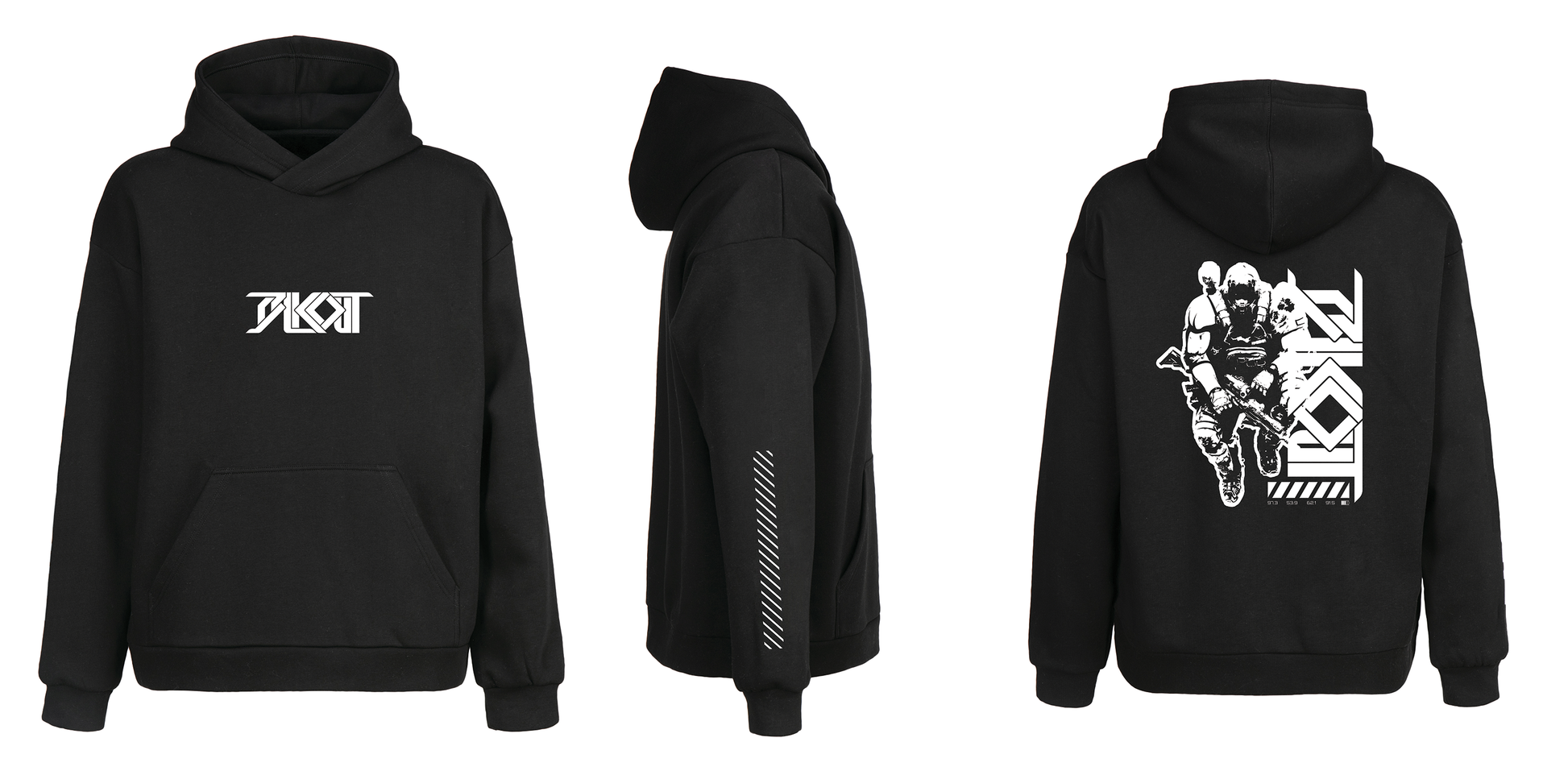 Represent BLKOUT with the large logo on the front and the thematic soldier/BLKOUT artwork on the back. Finishing the design are the awesome hazard stripes on the sleeves.